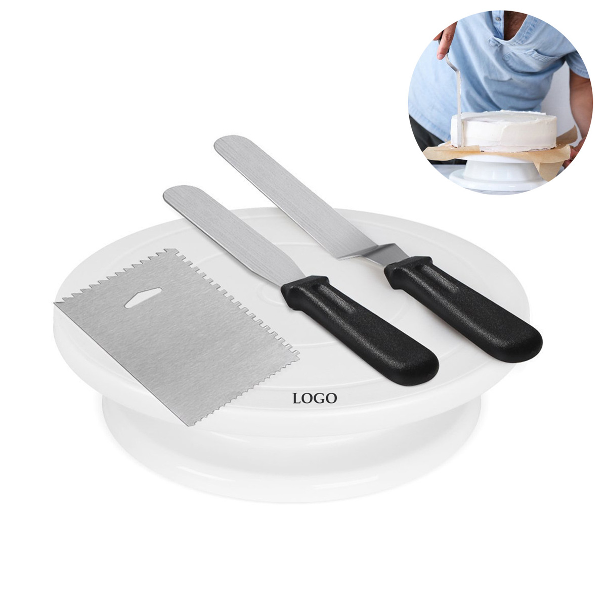 11 Inch Rotating Cake Turntable with 2 Icing Spatula and Icing Smoother
