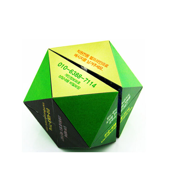 This 2 3/4" Custom Diamond Magic Cube features a unique design called CUBOCTAHEDRON. Amazing combination of the 6 square faces of a cube and the 8 equilateral triangle faces of an octahedron. Can create endless shapes, ideal for your brand promotion.