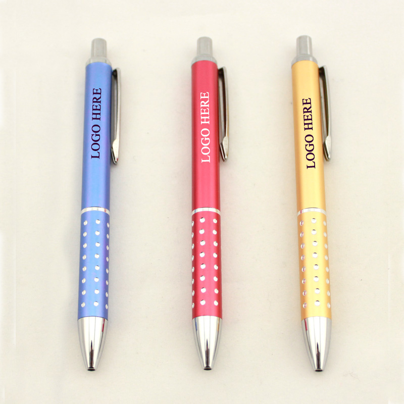 High quality ballpoint pen, made from aluminum pen body and plastic silver plated trims. Laser engraved grip. Your LOGO can be laser engraved or silk screen imprinted on the pen body. Many colors for your option.