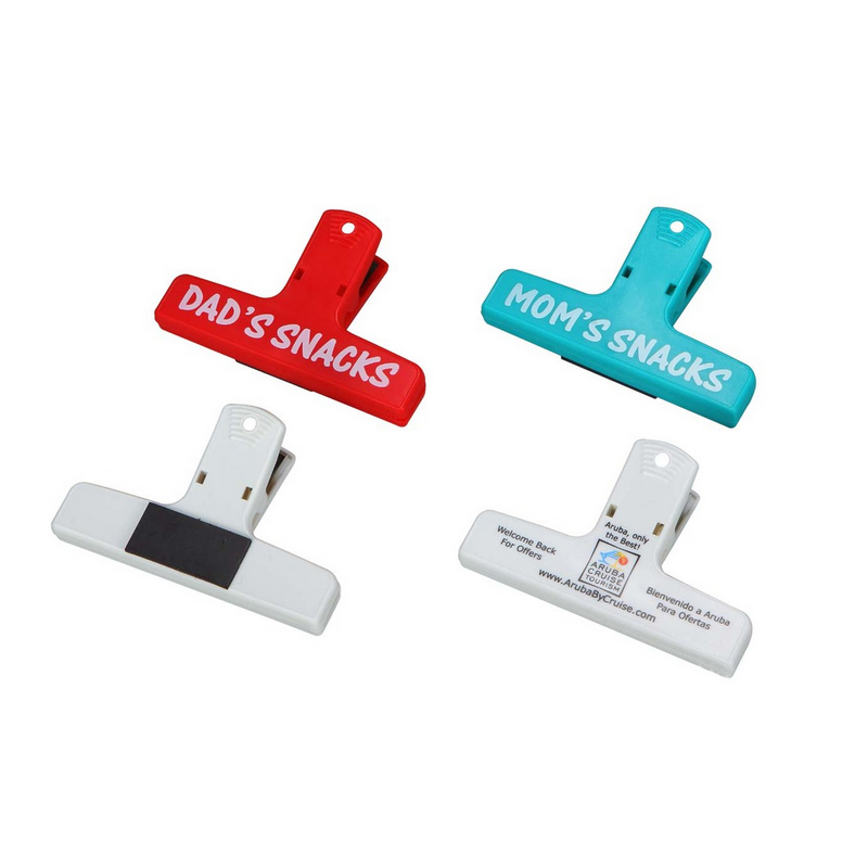 Plastic Bag Clip with magnetic back, length is 4". Seal open bags,keep fresh for your snack, chips, dried fruit and other food. Hold notes and documents. Your message or company LOGO can be exellent exposed on the large space. Many colors for your option.