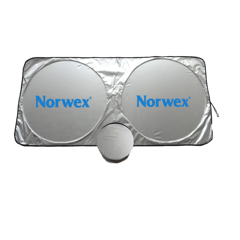 This Car Sunshade, is made from silver coated polyester. Well protect your car from strong sunshine. You can fold it into a little pouch, very convenient. Your company LOGO can be imprinted observably.