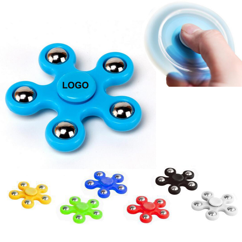 Cheap plastic fidget spinner, mini and five leaves design. Size is around 2 1/2"x 2 1/2". Easy to stop and start spinning. Great for children and promotional purpose. Many colors for your option. Your customized logo can be imprinted on the middle.