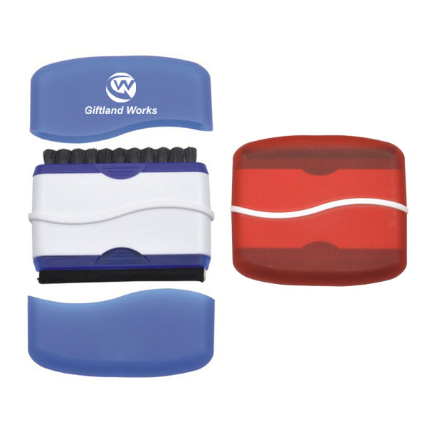 Plastic Keyboard Brush 2 in 1 for Computer. Keyboard Brush and Screen Brush, you get 2 handy sides for cleaning a monitor or keyboard. Double sided brush wipes down your screen and removes debris from the keyboard. Great accessory for laptops, desktop PCs, smartphones, tablets, game pads and more! Custom logo available.
