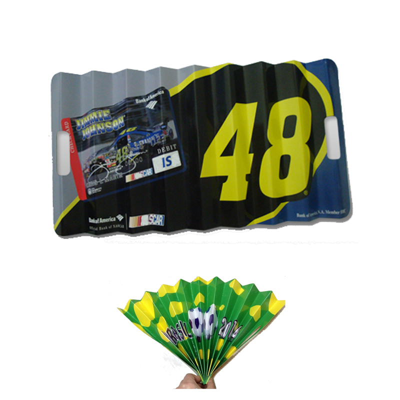 Fan Banner, made from 10 oz coated paper. Your artwork can be fully imprinted on both sides. When you are joining in events, watching sports or other campaigns. Use it to make some noise and show your support. It also can be a manual fan. Great promotional item for any events and activities.