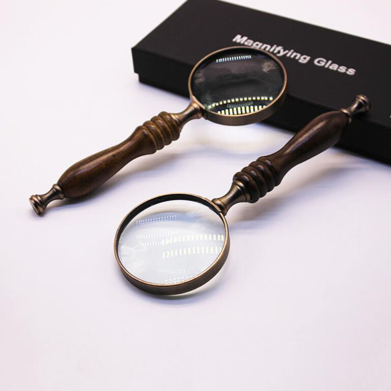 High Quality Antique Wooden Handle 8X Metal Magnifier