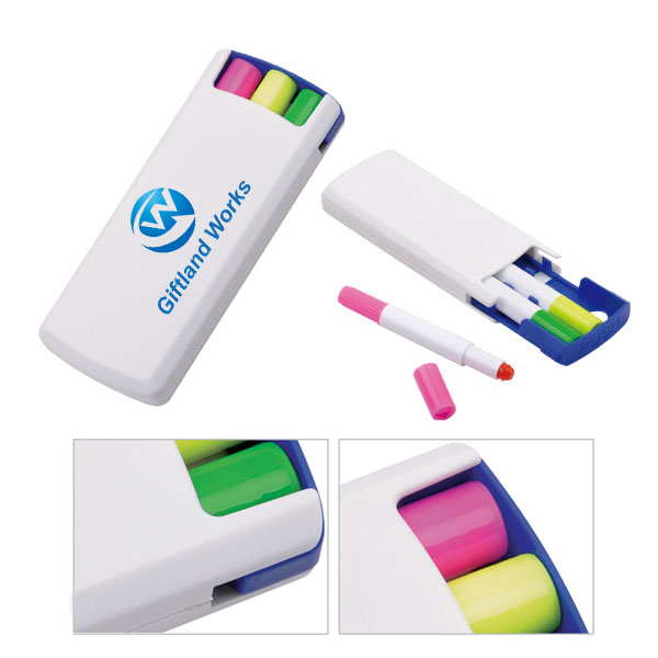 Get ready to take notes in style with this highlighter pen set. This writing set comes with one red, one green and one yellow highlighter pen in a plastic box. Suitable for office, school, promotion gift and etc. Can be imprinted with your company name and logo on the plastic box.
