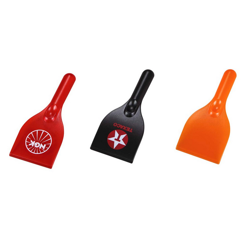 This item not only has the typical scraper, but it also includes a built in squeegee and ice breaker. Size is only around 2" x 2", this item can be easily attached on bags or stored in the glove compartment. Many colors and your customized LOGO is available.