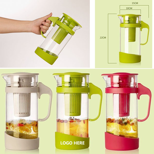 Bottle Volume: 1300ML. 100% borosilicate glass, PB free. Removable fruit design. Ergonomic handle design provided for easy carrying. Food grade silicone base, non slip design. You can carry this water bottle everywhere.