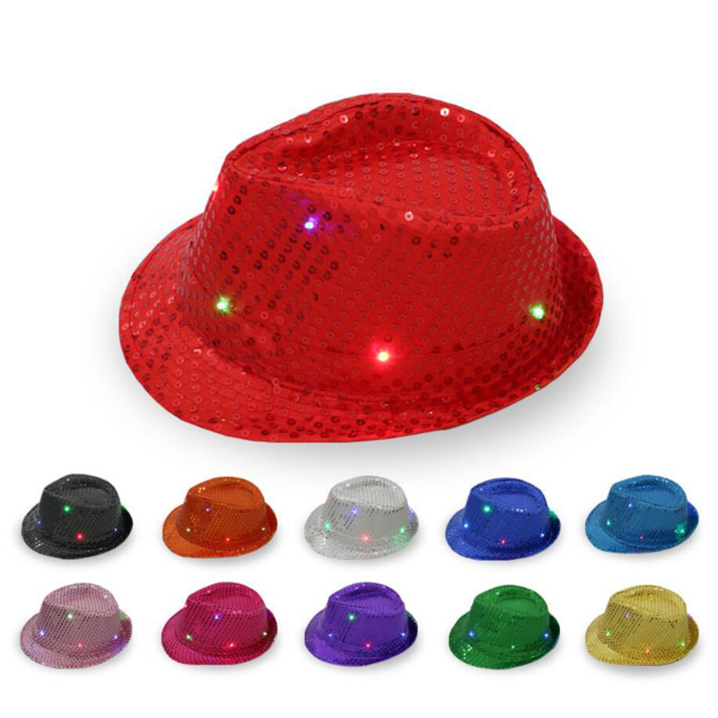 | Feature : | LED Flash Light Fedora Hat Jazz Hat Dance Hat Concert Cap Sequins Hat Short Brim Cap For Party |