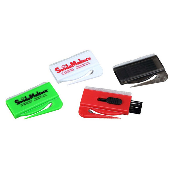 This multi function letter opener features have a computer brush and screen cleaner. Size is 2 3/4"x2 1/8". Ideal and economic promotional item for office, corporation, school, safety program, home and so on.