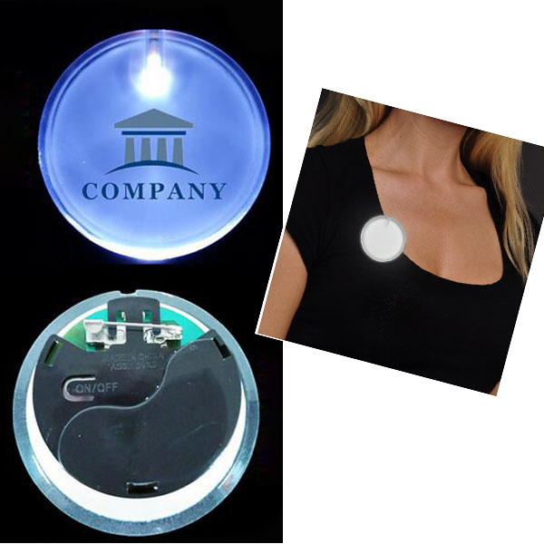 | Feature : | White Circle Light Up LED Badge With Safety Pin. |