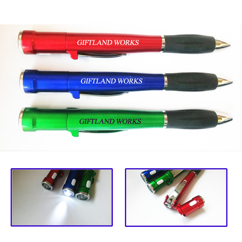 This Multi-function Pen, made from plastic. Including Ballpoint Pen,Nail Clipper and LED Flashlight. Many colors and your custom LOGO is available.