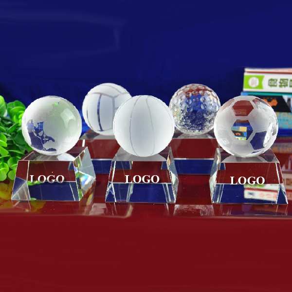 Ball Shape Optical Crystal Award. Five styles for your option: Basketball,Soccer ball, Volleyball, Golf ball and Globe.Your commend and LOGO can be etched on the base. Each packed in one gift box.