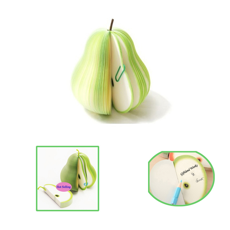 Pear Shaped Notepad, made from paper. Each page can be imprinted with your LOGO. Fruit memopad series apple (red & green), pear, peach, orange, watermelon, pomegranate, etc. And we also have vegetable series for your choice.