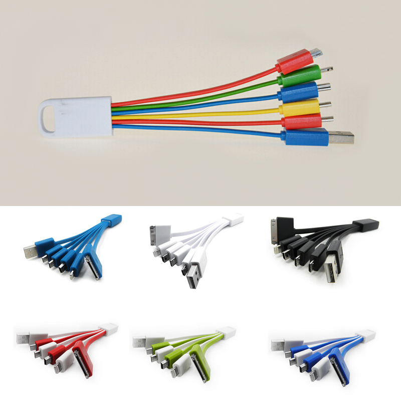 Charge your phones or electronics with this multi cable. Suitable for Apple and Android system, contect with your laptop or power bank. 5 plugs Include one 30 pin, one 8 pin, two micro USB, one mini USB. Easy to carry away, Lightweight and compact. This is a good travelling and office partner. Your LOGO or artwork can be imprinted on the plastic keyring.