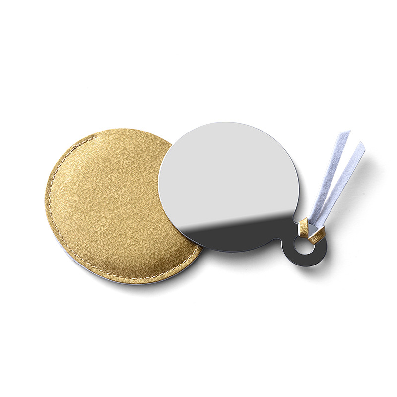 Round Shape Stainless Steel Mirror with PU Leather Cover