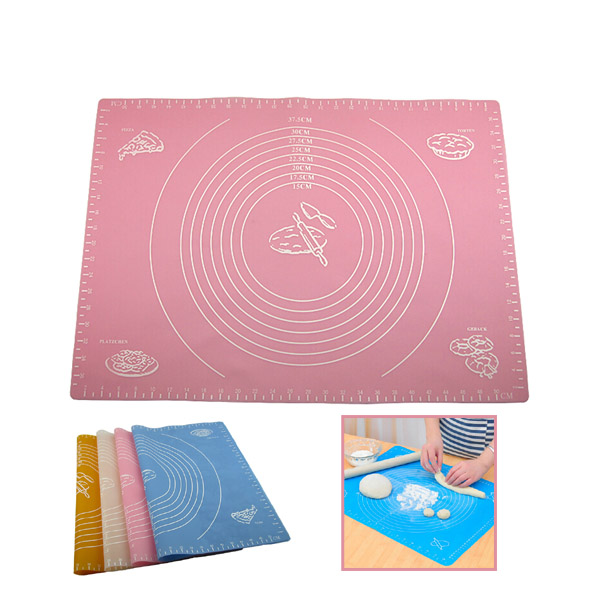 Baking mat, made from food grade silicone material. With FDA certificated. Size is 19.7"x15.7". Lightweight and easliy washable. Imprinted measuring scale help you control the dough's size precisely before you put it into the baking oven. Your great assistant to make pizza, bread or cake. High temperature resistant, fahrenheit -40 to 440 degree. Can be used as the tinfoil in the baking oven.