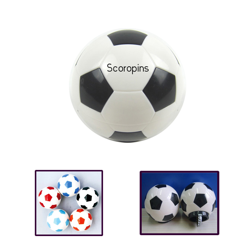 Soccer ball Bottle Opener, made from plastic and metal. When you put this on the bottle's neck, press it, the bottle cap will be took off easily.