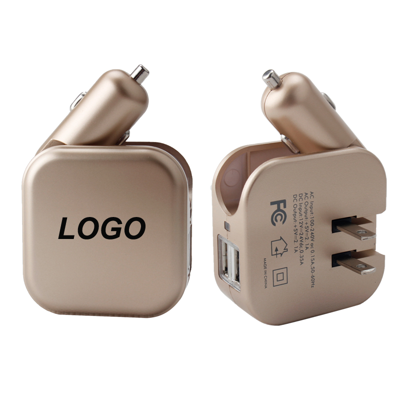 Travel adapter or plug, with car charger design. Two USB ports inside. Suit for US, China, Japan, Canada, Saudi Arabia. With CE & Rohs certificate. Thunderstrike protection. Charging indicate with LED light. Can charge your phone and tablet PC at the same time. Your great partner when travel or self driving tour. Your logo can be one color silkscreen or full color imprinted on the large area.