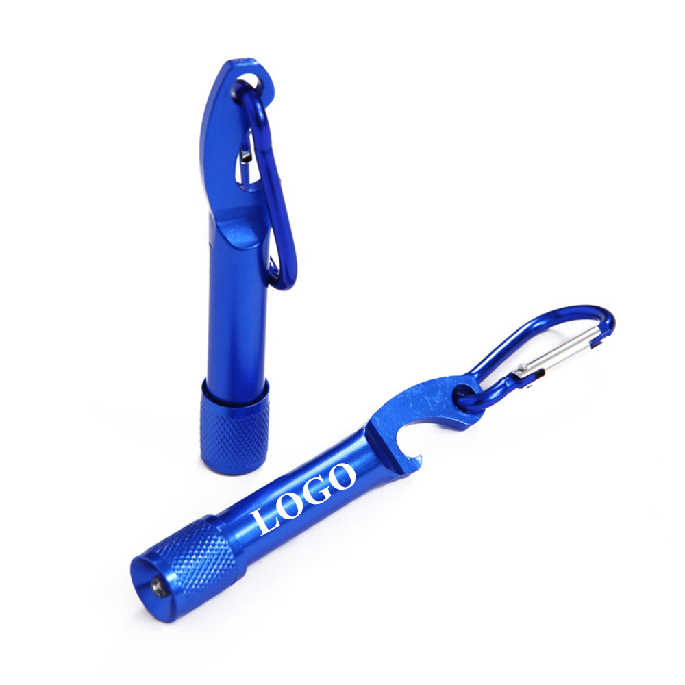 Made of high-quality aluminum alloy material with super bright high power LED, it makes the mini LED flashlight lightweight. Mini size, but bright, blinding effect, skid-proof design. Clip for convenience carry. Working voltage is wide and can utilize the batteries in the largest extent. Multifunctional, can be used both as bottle opener and as LED flashlight. Suitable for hunting, cycling, climbing, camping and outdoor activity etc. Your LOGO or artwork can be laser engraved on it.