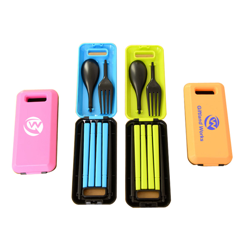 This 3 Pieces Flatware Set is made of ABS. Total weght is about 61g. Size: 4.8"x2.4"x0.8". There are a pair of chopsticks, a fork and spoon, great to eat noodle, cake, rice, vegetable and so on. Portable environmental protection, easy to clean. It is good for outdoor travel.
