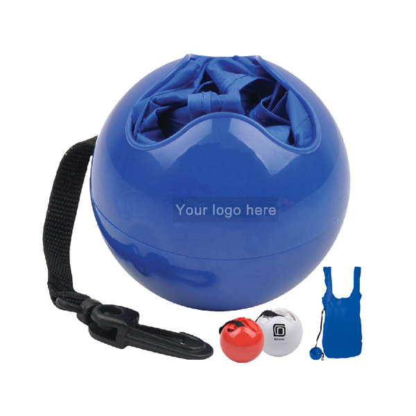 Your clients will have a "ball" with this convenient tote bag, logo can be Imprinted on the ball. This bag can be folded into a plastic ball.