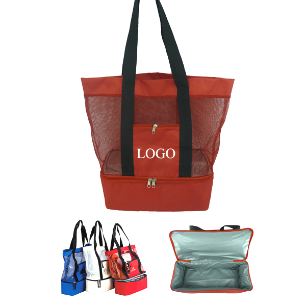 Pack everything you need in this fun, fashionable tote bag with cooler, made of 600 denier polyester and mesh, this tote takes it all! perfect for parties or a day at the beach! Located at the base of the bag, the cooler is well-insulated .The mesh compartment at the top of the tote is ideal for towels, books and incidentals. Welcome your logo with custom color .