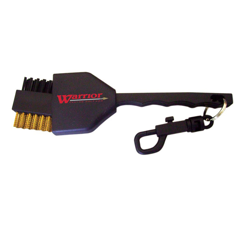 Golf Club Brush. One side is Nylon brush,the other side is copper brush. A plastic clip make it easy to carry with you. Your LOGO can be imprinted on the plastic protective sliding cover.