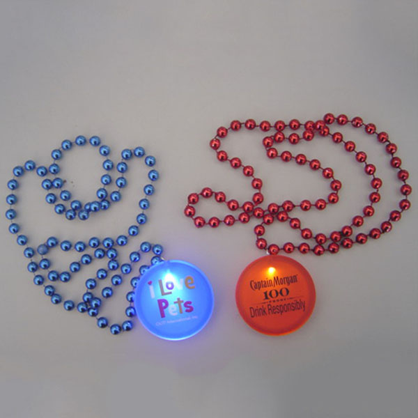 | Feature : | LED Flashing Badge with Beaded Necklace. |