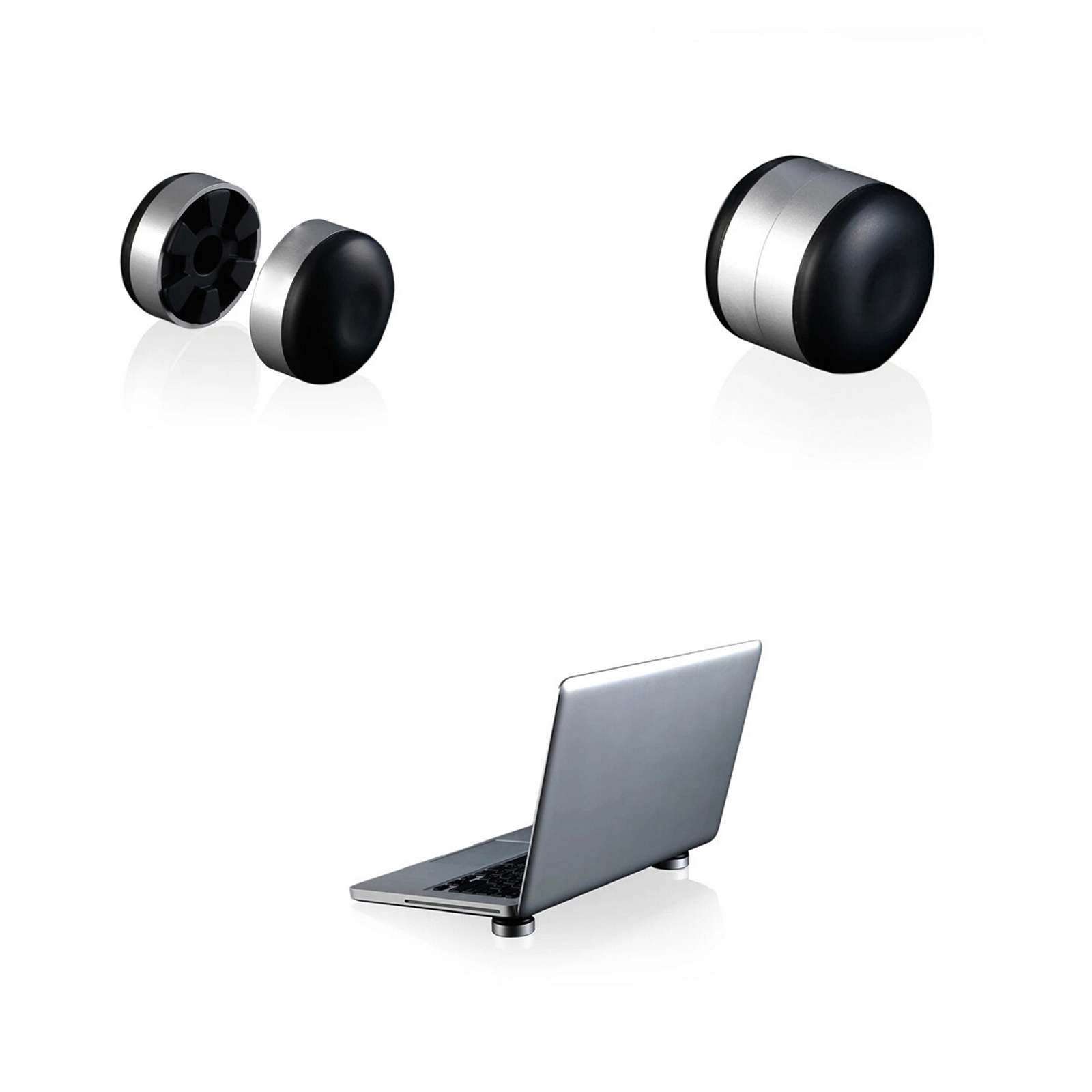 Our product is made of high quality aluminum alloy. Soft rubber protects your laptop from wear. It can help the laptop to dissipate heat, making your laptop safer and more fluent. Ergonomic design, suitable tilt angle makes you more relaxed while typing. The two bases can be locked together when idle. Please contact us for more details.