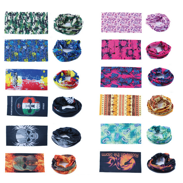 Magic scarf, neckerchief. It's not just a scarf, it can be used as headband, wristband, neckerchief and so on. Ideal for outdoor, it protect your face and neck from UV, sunlight and dust. Comfortable, soft and warm, keeps vulnerable neck and face areas protected. Your artwork can be fully imprinted on the whole scarf.