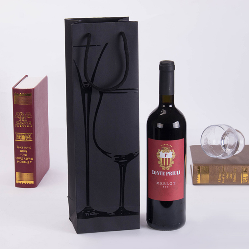 | Feature : | Black Metallic Foil Singe Bottle Wine Paper Tote Bag With Handle. |