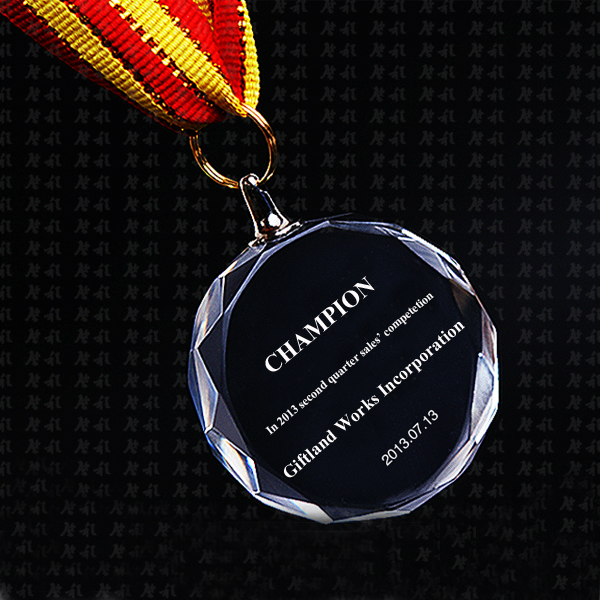 | Feature : | Optical Crystal Medal with ribbon, diameter is 3 1/8". |