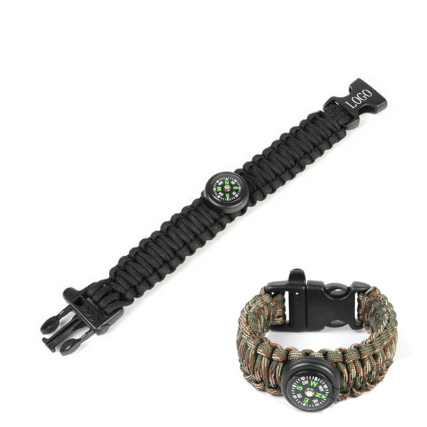 Paracord bracelet or survival strap with compass. Made from strong pulling force strap (over 280 pounds). Unravel the bracelet to deploy the paracord for your use in an emergency. It's not just a stylish to wear this paracord bracelet or survival strap, but also a symbol of strength and survival ability. Your customized logo can be imprinted on the plastic buckle, which is a whistle when you unravel it. Lots of colors and styles for your option.
