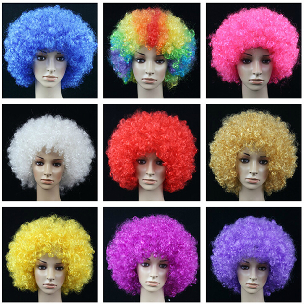 Wear this special wig, you will be surely one of the brightest stars in the party. Synthetic Party Wig, Afro style. Made from antiflaming material. Height is around 7.8". Many colors for your option.