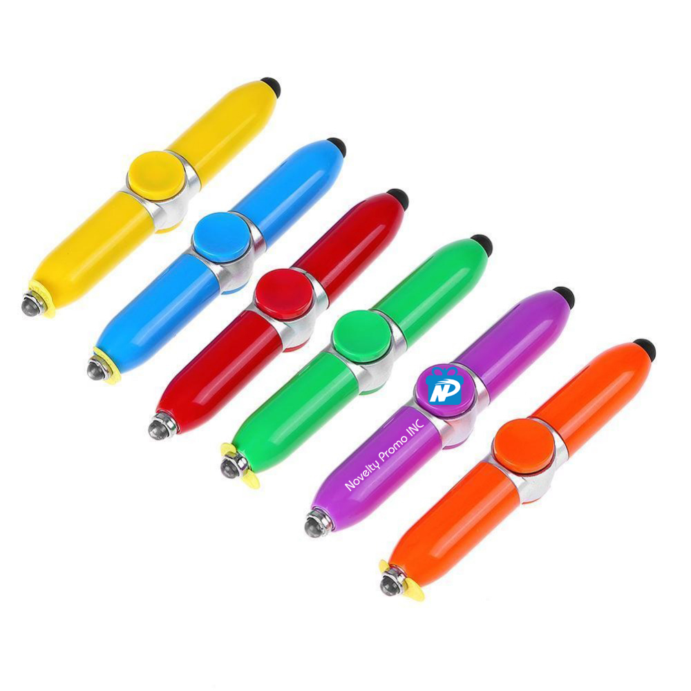 It can be used as a pen for writing also can be used as a spinner anytime. Fidget spinner pen will inspire you at work, school or home. The pen spins very quietly so you can play it in office and classroom at free time. The flashlight on this pen can be used to lighting up when you play the spinner or you can use it as a backup flashlight when you need it in darkness. This pen is very suitable to be given as a gift. Your LOGO or artwork can be imprinted on it.