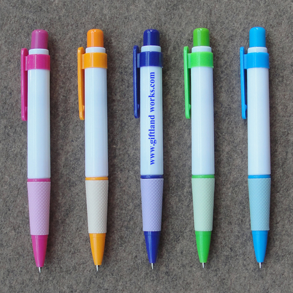 Click action plastic ballpoint pen. Colored clip and trims, economic style. Black or blue ink for your option. Many colors and your customized LOGO is available.