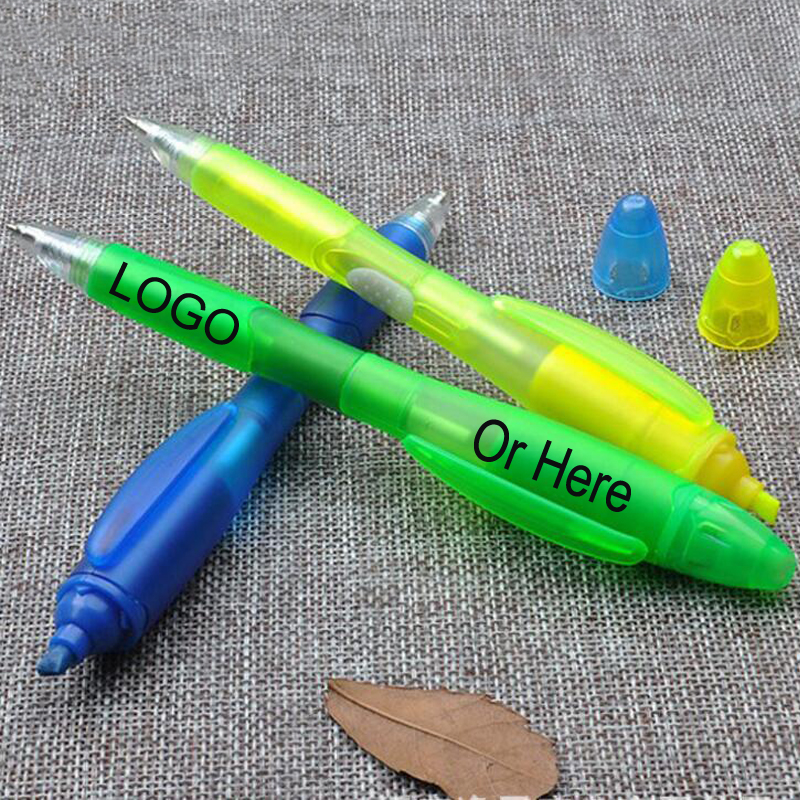 It's not just a ball point pen, but also a highlighter. 2 in 1 combo design, one side is ball point pen, the other side is highlighter. With length 5.9". Many colors for your option. Generous imprinting area, great promotional item.