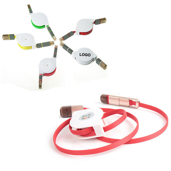 2 in 1 data sync cable compatible with iOS and Android for charging and data transfer. Flat and retractable cable design that prevents the cable from tangles and lasts longer.