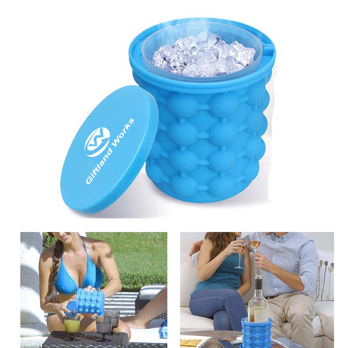 Made of durable and lightweight and safe flexible silicone. Large size (5.3"X5.7"), the ice cube is designed to hold 120 scubes perfect for quickly chilling all types of beverages. Smaller ice cubes allows for shorter freezing times. Pour your drinks and frozen items into the bucket to keep them cold! Simply insert the bucket inside the silicone mold and fill between with water. Remove inner bucket when frozen, squeeze the silicone mold to release the ice. Store the ice in the inner bucket and repeat the process until the bucket is full!
