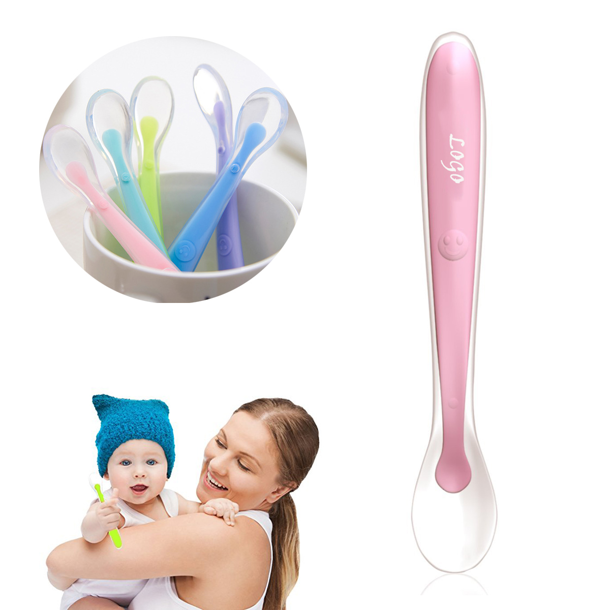 Silicone Soft-Tip Baby Spoon all covered with soft slicone. Soft tip protects baby's delicate gums and teeth. Perfect size for baby’s little mouth. Safely reduce the risk of choking with perfectly sized shallow spoon that serves baby the right bite portion every time. Baby will enjoy mealtime with our colorful spoons.