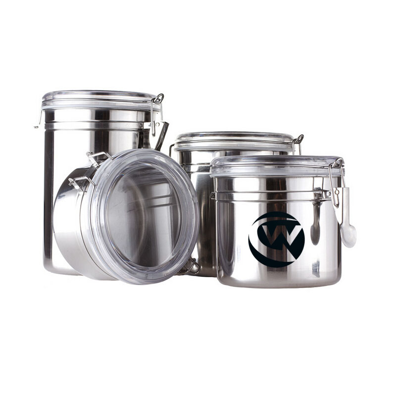 | Feature : | Stainless Steel Kitchen Airtight Canister Set 5 Inches Diameter, Including 4 Pots |