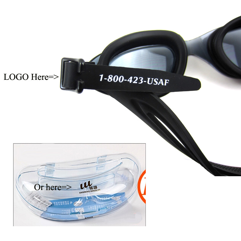 Universal Swimming Goggles Glasses. UV protection and anti-fog, with sides adjustable buckle, soft pure silicone tape, great elasticity. Easy to use. Mirror coated lens and soft silicone eyecup. Siamese nose bridge design is comfortable to wear. Many colors for your option. Your LOGO can be imprinted on the silicone belt or on the outside of packing case.