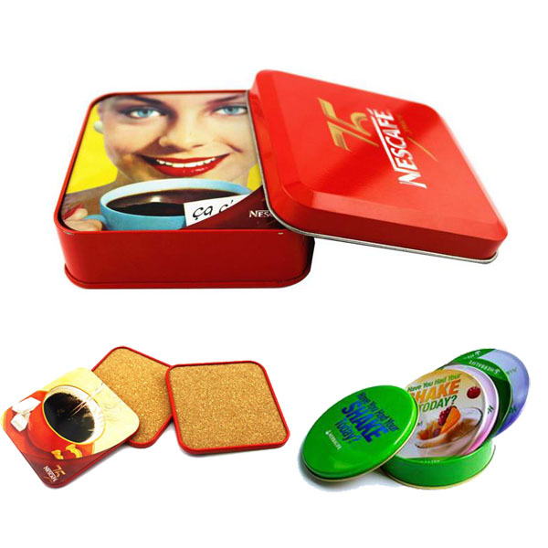 | Feature : | Tinplate cup mat, 4 pcs packed in one tinplate case. |