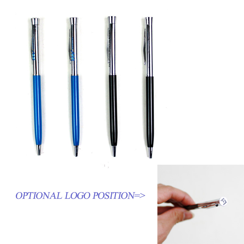 This Pen is very tiny and delicate,size is appr 5 3/8"x1/4". It's made from copper and stainless steel. With twist design. It has two positions choice for your LOGO. It's our hot-selling one, great for Hotel and Office.