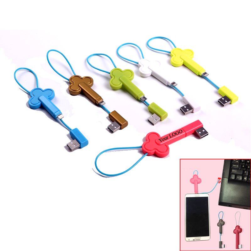 Key shaped USB cable. It can be used for all electronic device with 8 PIN (for I phone 5) Interface or MICRO USB Interface(for e.g: PAD,GALAXY TAB,SAMSUNG phones,HTC phones and so on). Two interfaces for your option. Cable length is 7.8 inches when you pull open it. Data transmission and connecting charger is available.