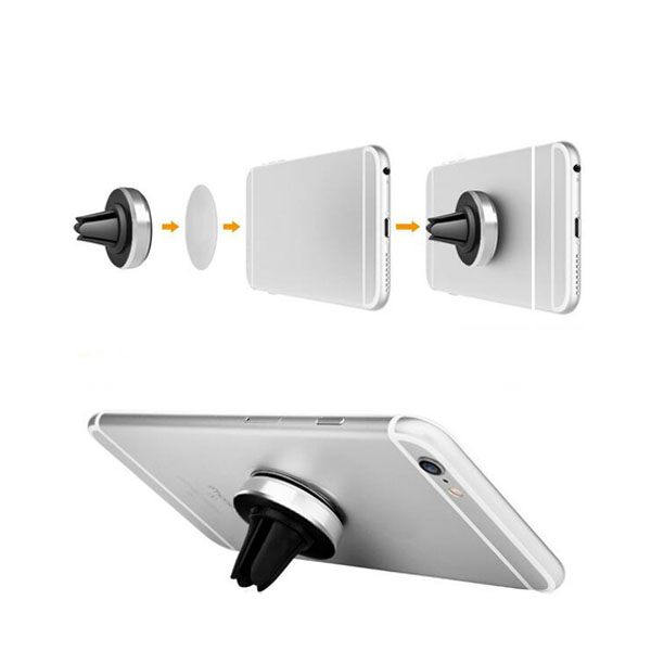 Magnetic car mount holder compatible with most smartphones as well as their cases and GPS devices. Provides a choice of an inner (large) and outer (small) metal plate which can insert into phone cover and back cases or adhere to the back of your device. The circular metal plate will stick on the mount. Please pick from the gel plate when using on your device. Small and simple, effortless installation, mounts to any vehicle's air vent. Allows you to quickly adjust to optimal angle in 360 degrees.